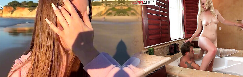 Action of baps showcasing on crowded beach by zesty bootylicious blond teenager
