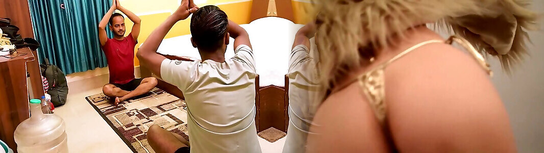 一个瑜伽老师惩罚他的性感的学生在训练时间铁杆他妈的与他的学生三人行性爱